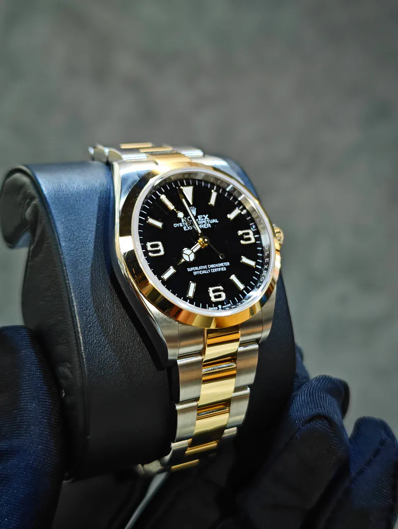 The Explorer 124273 marries heritage tool watch functionality with refined two-tone aesthetics. Its compact 36?mm case and clear, highly legible black dial make it practical and versatile, while the yellow gold accents elevate its presence ? ideal for everyday wear or more polished occasions alike.