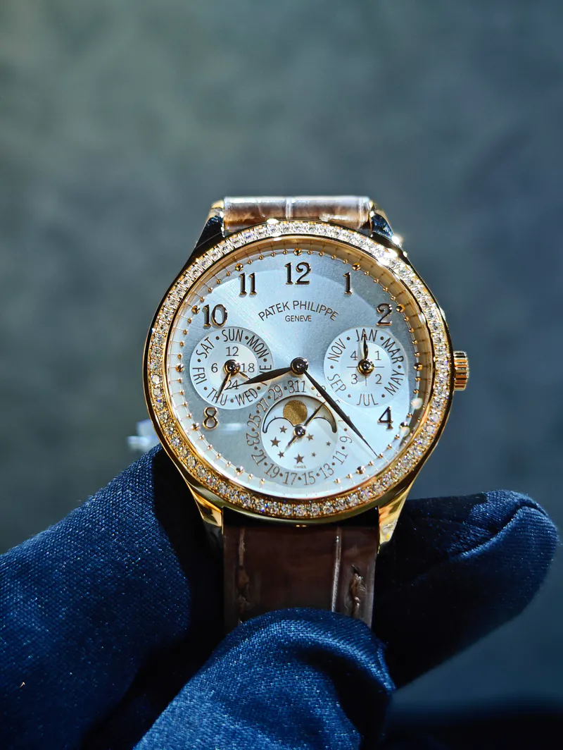 The Patek Philippe 7140R-001 is a standout from the Grand Complications collection, representing one of the most elegant perpetual calendar watches tailored primarily toward those who appreciate refined haute horlogerie in a slightly smaller format. Its combination of 18K rose gold, diamond accents, and a silvery sunburst/opaline dial gives it both timeless and luxurious appeal.