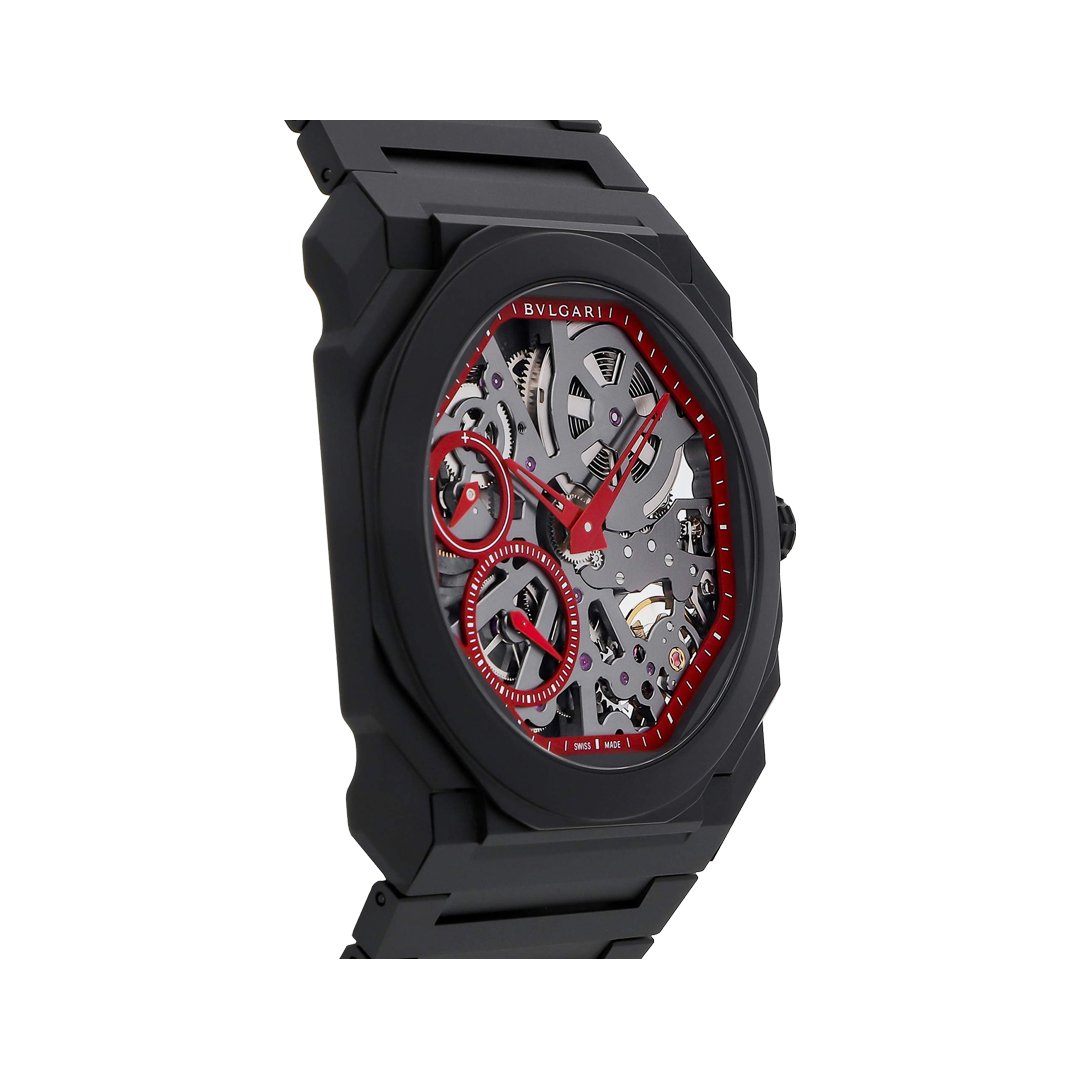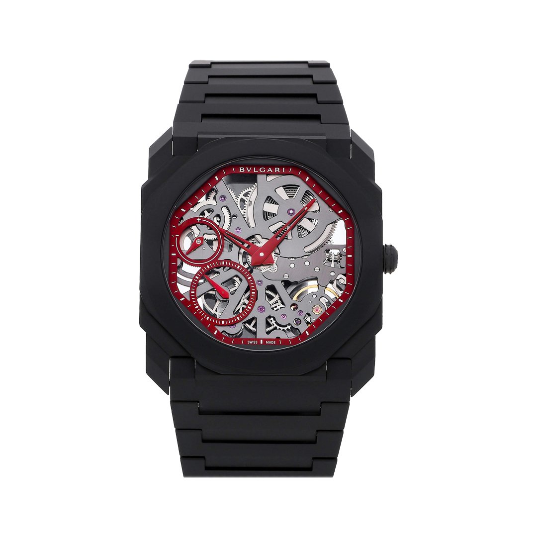 Elevate your style with the Bvlgari Octo Finissimo 103527 Hand Wind 40mm Skeleton Dial Men?s Watch. Watch Specifications : BRAND : Bvlgari (Bulgari) REF : 1035257 Case Size :40 Case Thickness : 5.3 mm Case Material :Ceramic Case Shape : Octagon Case Back : Transparent Band Color : Black Dial Color : Transparent Type : Analog Bezel Color : Black Bezel Material : Ceramic Crown Pull / Push Collection Name : Octo Finissimo Gender : Mens Movement : Hand Wind Water Resistance : 30 meters / 100 feet Functions : Power Reserve, Hour, Minute, Second Watch Features : Ceramic, Analog Backed by ‘s commitment to quality and customer satisfaction.