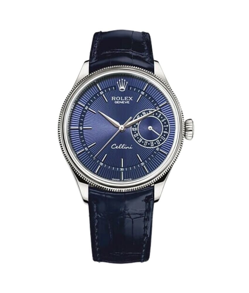 Unveil the magnificence of the Rolex Cellini Date M50519-0011 39 Mm 18 Ct White Gold Polished Finish. Luxurious Design in 18kt White Gold Crafted with precision and attention to detail, the Rolex Cellini Date m50519-0011 watch exudes luxury and elegance. The polished 18kt white gold case showcases exquisite craftsmanship, while the double-tiered domed and fluted bezel adds a touch of grandeur to the overall design. A Captivating Blue Dial The watch features a captivating blue dial with a sunburst guilloche texture that steals the spotlight. The applied polished white gold index hour markers and fine printed minute/seconds track perfectly complement the dial, ensuring accurate timekeeping. The … Explore our complete luxury watch collection.