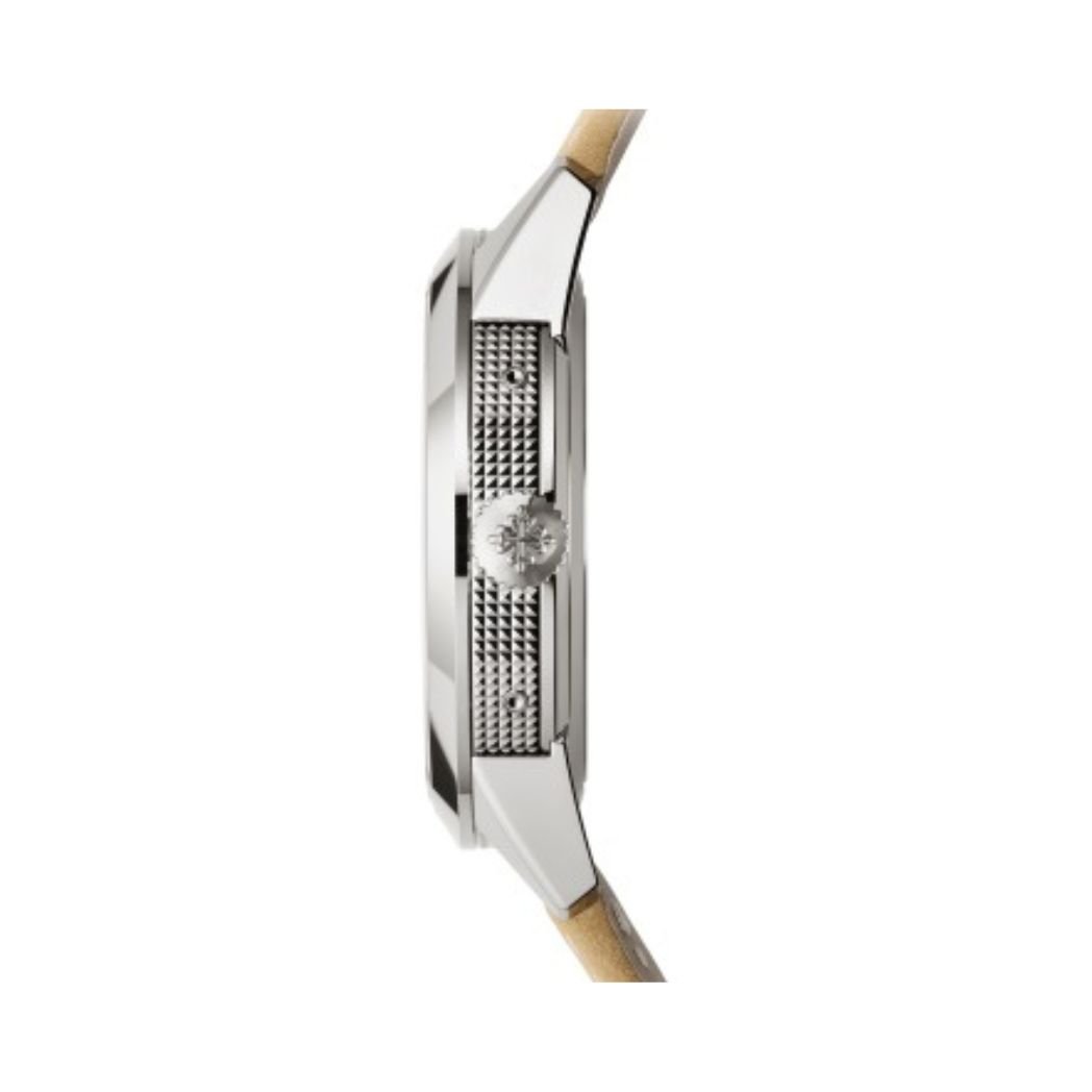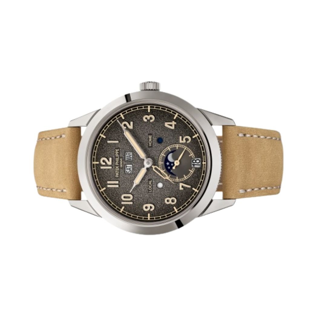 Discover the exceptional craftsmanship of the Patek Philippe Complications 5326G-001 Textured Charcoal Grey Dial. Simple Elegance and Smarts The Patek Philippe Complications 5326G-001 Men?s Chronometer perfectly blends classic style and high-tech features. Housed in a beautiful 41mm white gold case, this chronometer has a special pattern that adds a one-of-a-kind touch. It?s a first-of-its-kind watch from Patek Philippe that combines an old-school look with a modern touch. Advanced Movement This is the first time Patek Philippe has put two special features in one watch. The 5326G-001 Annual Calendar Travel Time is powered by a new, automatic movement, called 31-260 PS QA LU FUS 24H. This makes sure the ti… Explore our complete luxury watch collection.