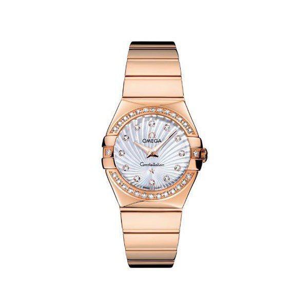 WATCH SPECIFICATIONS Brand: Omega Ref. 123.55.27.60.55.005 Collection: Constellation Case Material: 18kt Rose Gold Movement: Quartz Case shape: Round Bracelet: 18kt Rose Gold Crystal: Scratch resistant sapphire Bezel: 18kt Rose Gold Dial: White Diameter: 27mm Water Resistance: 100m