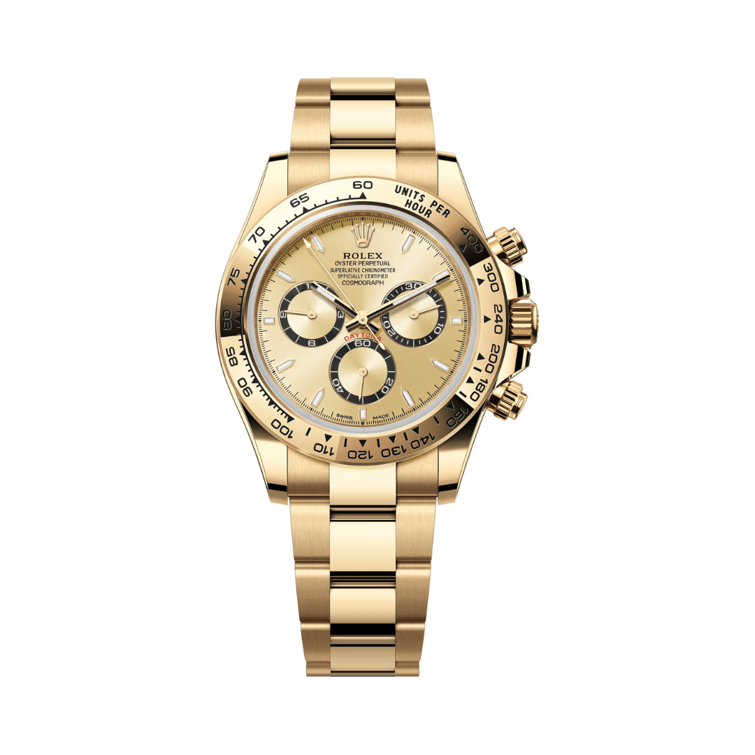 Express your individuality with the Rolex Cosmograph Daytona 126508-0005 18k Yellow Gold Bezel Golden Dial. The Rolex Cosmograph Daytona 126508-0005 is a timeless piece combining sophistication and functionality. The 40mm case is crafted from polished 18k yellow gold, exuding elegance. Its golden dial with index hour markers ensures easy readability, making it both a style statement and a practical tool. Functional Excellence This watch boasts a chronograph feature with a central seconds hand, a 30-minute counter at 3 o?clock, and a 12-hour counter at 9 o?clock. A small seconds sub-dial at 6 o?clock adds to its precision, while the tachymeter scale on the bezel allows accurate speed calculations. Re… Shop with confidence – where luxury meets authenticity.