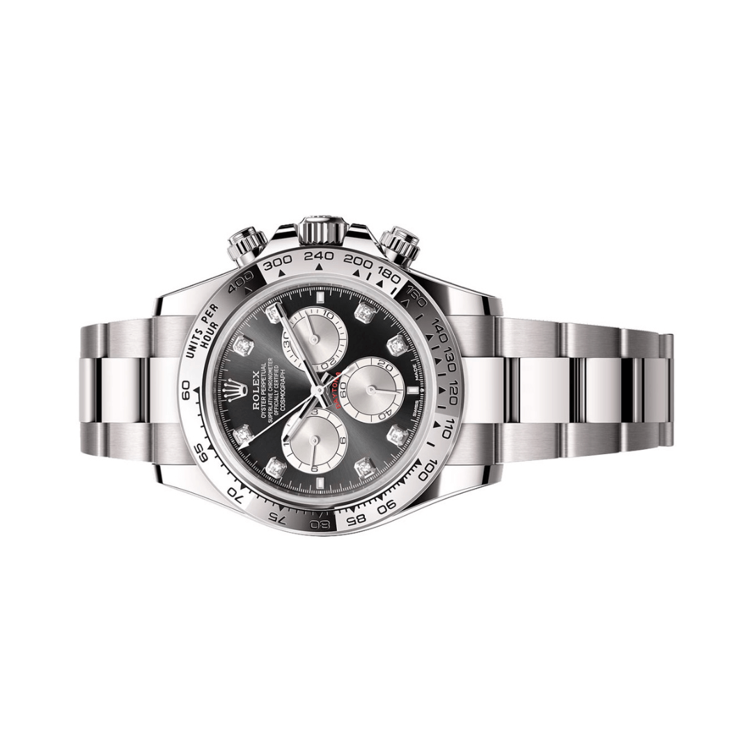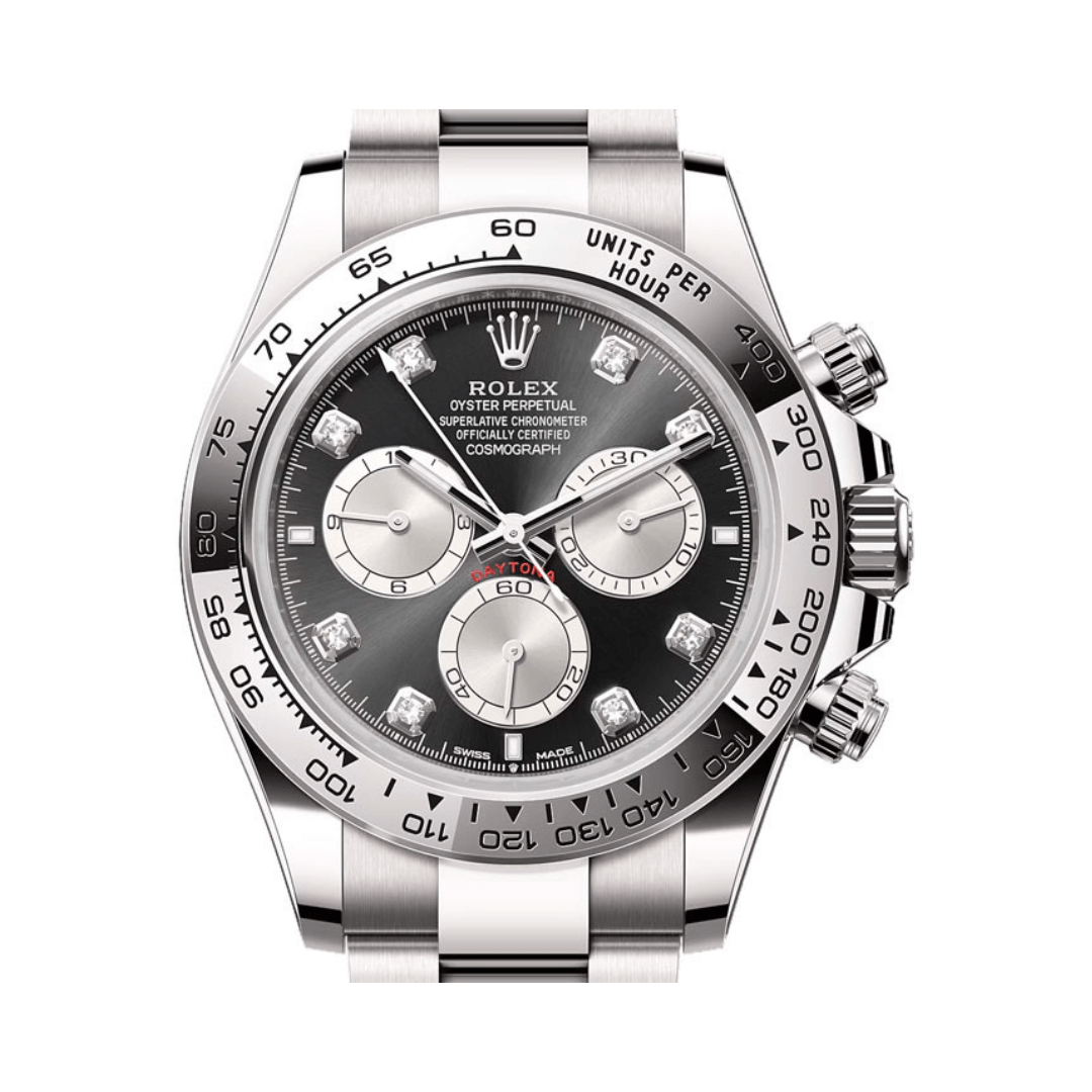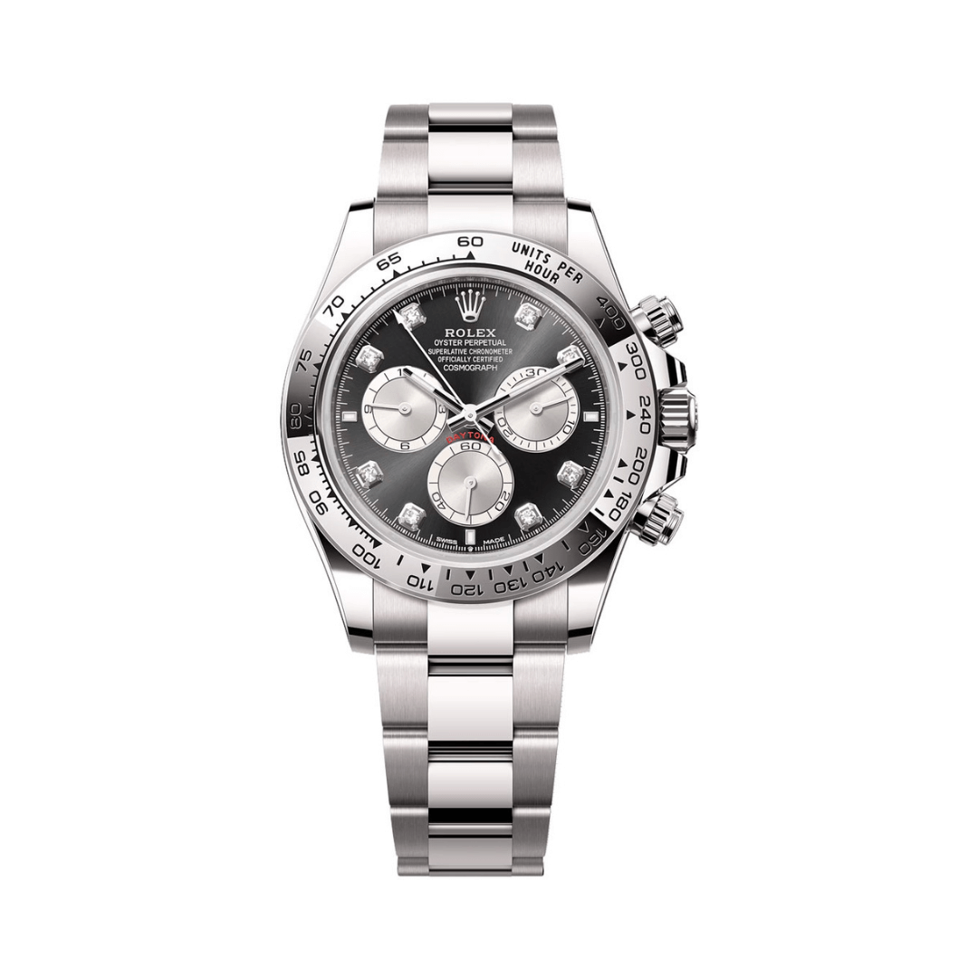 Unveil the magnificence of the Rolex Cosmograph Daytona 126509-0002 18kt White Gold Black Diamond Dial. The Rolex Cosmograph Daytona 126509-0002 is a symbol of sophistication and high performance, crafted in premium 18K white gold. Its bold design and advanced functionality make it an ideal choice for those who value luxury and precision. Here?s an in-depth look at its standout features. Elegant 18K White Gold Case and Bezel The watch showcases a durable 40mm case made of 18K white gold, giving it a refined yet resilient exterior. Designed with a screw-down back and a crown featuring the Triplock triple waterproofness system, this watch ensures reliable water resistance up to 100 meters (330 fee… Experience exceptional service and authenticity.