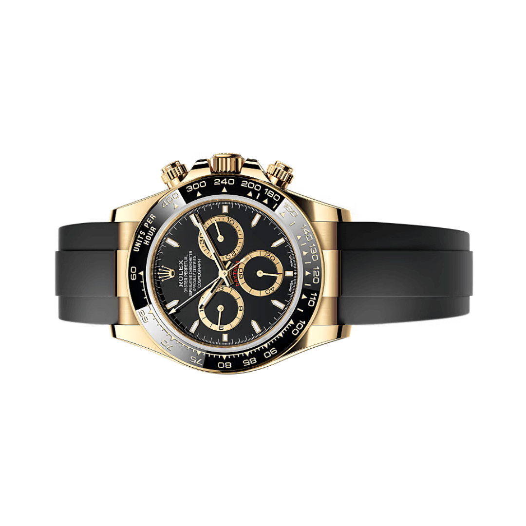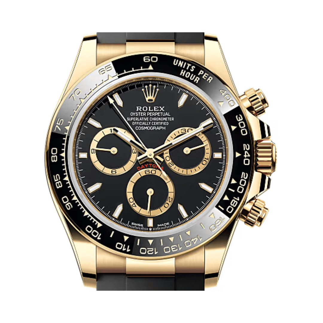 Express your individuality with the Rolex Cosmograph Daytona 126518LN-0008 Oyster Perpetual 18CT Yellow Gold 40mm Black Dial Mens Watch. The Rolex Cosmograph Daytona 126518LN-0008 is a premium men?s watch crafted for both style and strength. It features a 40mm Oyster case made from 18k yellow gold, built with a solid middle case, screw-down case back, and winding crown. The black ceramic bezel is crafted using Rolex?s Cerachrom material and includes a tachymetric scale for measuring speed. High Precision and Water Protection This timepiece is equipped with a Triplock triple waterproofness system, allowing it to resist water up to 100 meters (330 feet). The scratch-resistant sapphire crystal protects the dial, while the Chromali… Shop with confidence – where luxury meets authenticity.