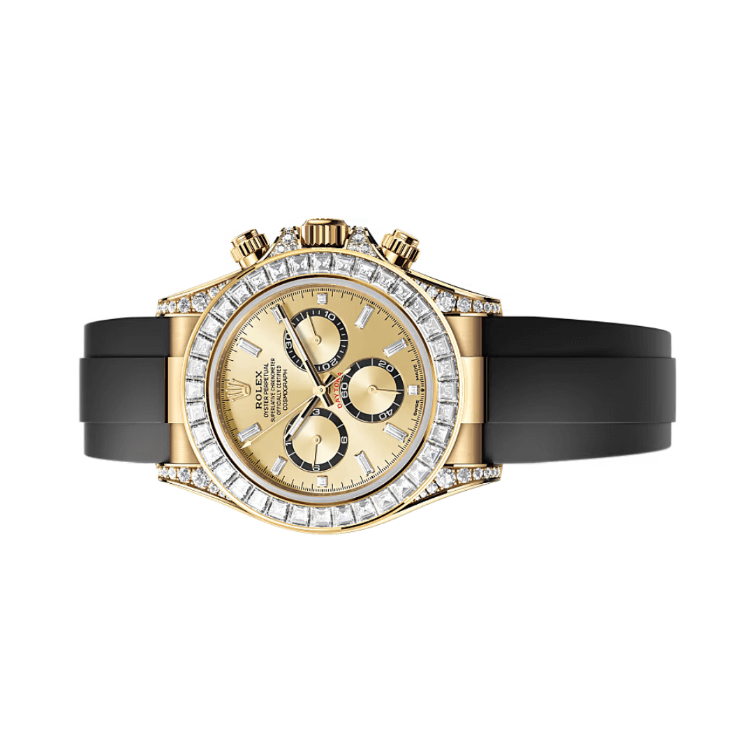Elevate your style with the Rolex Cosmograph Daytona 126538TBR-0004 Oyster Perpetual 18 CT Yellow Gold 40mm Golden Diamond Dial Mens Watch. The Rolex Cosmograph Daytona 126538TBR-0004 is a luxury men?s timepiece made with fine materials and detailed craftsmanship. Its beautiful design and high performance make it a perfect choice for those who want elegance and function in one watch. Strong Yellow Gold Case with Diamonds This watch comes with a 40mm Oyster case made of 18 ct yellow gold. The case also features lugs set with diamonds for extra shine. It includes a screw-down back and winding crown built with the Triplock waterproof system. The bezel is set with diamonds, giving the watch a rich and stylish look. Eye-Catching Golden… Experience exceptional service and authenticity.