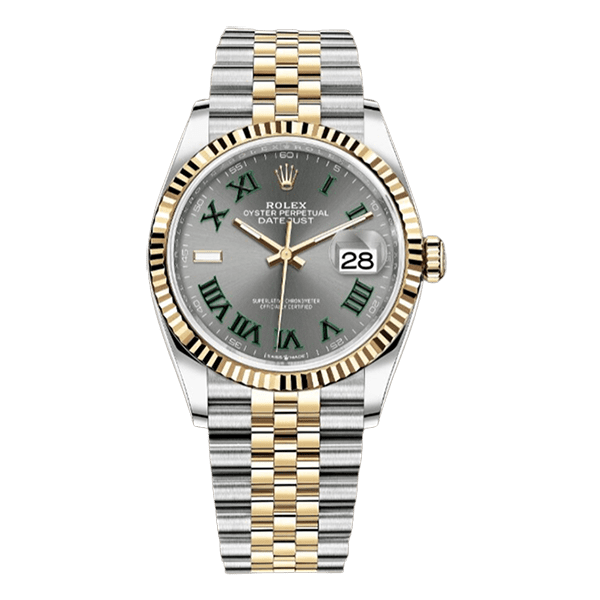 Product: Datejust 126233-0035 Slate Grey Green Roman Dial 36Mm Stainless Steel And 18K Yellow Gold Chronometer