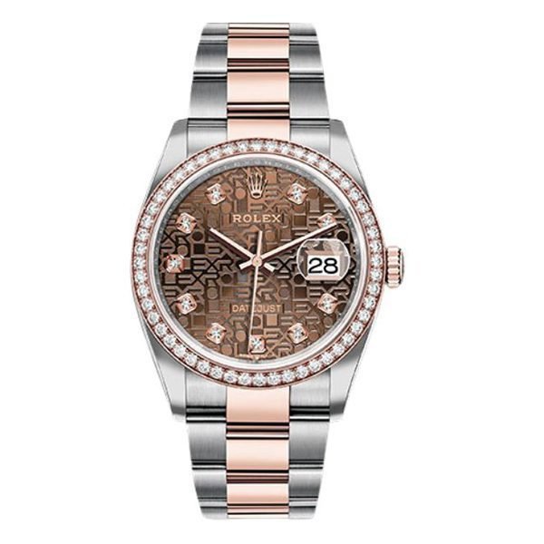 Step into luxury with the Rolex Datejust 126281 Chojdo Chocolate Diamond Dial 36Mm Diamond Set Bezel 18K Everose Gold And Oystersteel Unisex Watch. Rolex Datejust 126281 CHOJDO Chocolate Diamond Dial 36mm Diamond Set Bezel 18k Everose Gold and Oystersteel Unisex The Rolex Datejust 126281RBR CHOJDO features 36mm Everose Rolesor case with Oystersteel monobloc middle case, screw-down steel back, screw-down 18K Everose crown, 18K Everose diamond bezel, chocolate Jubilee dial, 10 diamond hour markers, Rolex calibre 3235 self-winding movement with date at 3 o?clock, approximately 70 hours of power reserve, Everose Rolesor Oyster bracelet with flat three-piece links, folding Oysterclasp buckle with Easylink 5mm comfort extension link. Waterproof… Part of our curated collection, ensuring quality and authenticity.