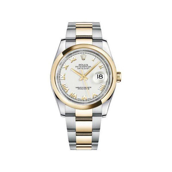WATCH SPECIFICATIONS: 36mm 18kt yellow gold case, white dial with roman numerals, scratch resistant sapphire crystal, deployment buckle clasp, screw down crown, automatic movement, fixed bezel, water resistant to 100m/330ft.