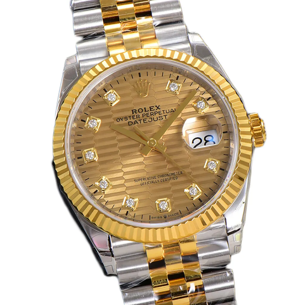 Product: DateJust 36mm 126233 Clean 1:1 Best Edition 904L Steel YG Textured Diamonds Dial on Jubilee Bracelet VR3235