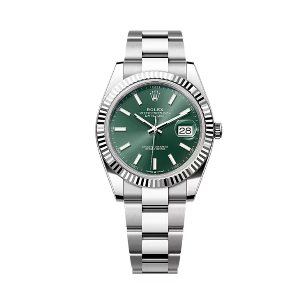 Step into luxury with the Rolex Datejust 41 126334-0027 Oystersteel-White Gold Mint Green Dial 41mm Men?S Watch. The Rolex Datejust 41 126334-0027 is a flawless embodiment of sophistication and precision. Crafted from a combination of Oystersteel and 18ct white gold, this elegant timepiece exudes timeless appeal. The stunning mint green dial adds a refreshing and avant-garde touch, complemented by luminous hour markers and the signature date display at 3 o?clock. Housed in a 41mm Oyster case, the watch is designed for durability and style, making it ideal for both formal and casual wear. Powered by the Rolex Calibre 3235 automatic movement, it offers superior performance, accuracy, and a power reserve of… Join thousands of satisfied customers who trust for luxury watches.