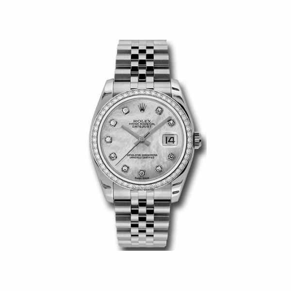 Embrace timeless elegance with the Rolex Datejust Diamond Bezel 36Mm Stainless Steel Ladies Watch. 36mm stainless steel case, 18K white gold bezel set with 52 brilliant-cut diamonds, mother of pearl dial, diamond hour markers, and stainless steel Jubilee bracelet, solid case back, scratch resistant sapphire crystal, screw down crown, power reserve 50 h, automatic movement, concealed crown clasp, water resistant to 100m/330ft. Join thousands of satisfied customers who trust for luxury watches.
