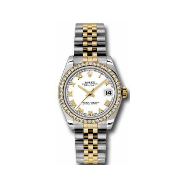31mm stainless steel case, 18K yellow gold bezel set with 46 diamonds, white dial, Roman numerals, stainless steel and 18K yellow gold Jubilee bracelet.