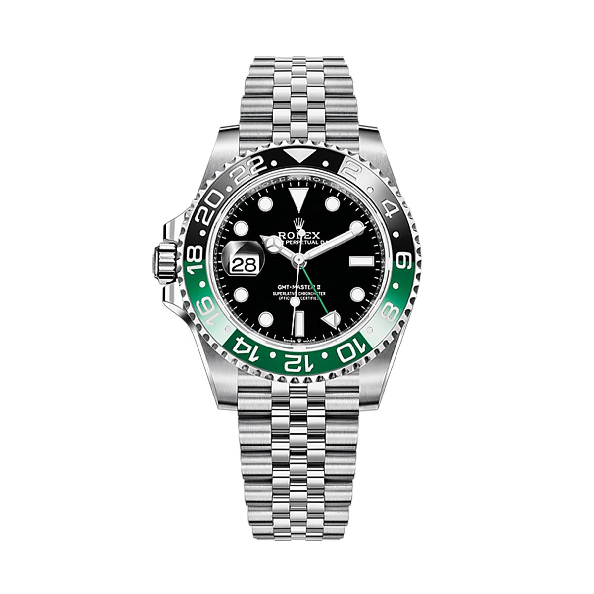 Rolex GMT Master II Sprite 126720VTNR in 40mm Oystersteel has a green and black ceramic bezel, a left-hand crown, and a Jubilee bracelet. Its left-handed crown combines Rolex?s heritage with a contemporary dual-time function for? Available – your luxury watch destination.