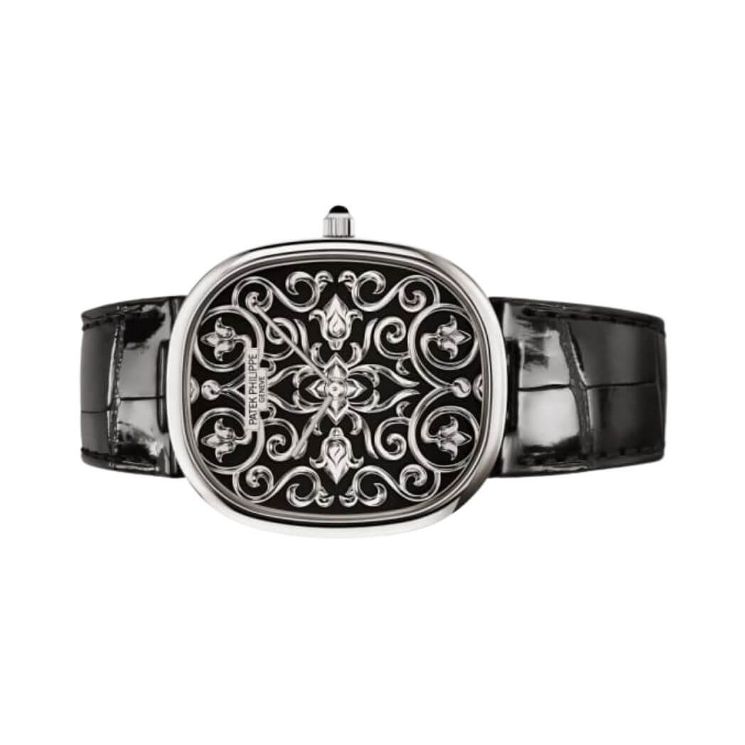 Showcase your refined taste with the Patek Philippe Golden Ellipse 5738/51G-001 Black Enameled Dial 18K White Gold. The Patek Philippe Golden Ellipse 5738/51G-001 is a stunning watch blends classic style with incredible craftsmanship. Made from high-quality 18-karat white gold, this timepiece represents elegance and luxury at its finest. Design and Dial The center of this horological masterpiece features a unique design that displays rare handcrafted details. The dial plate, made of 18K gold, goes through a careful and precise process to achieve a breathtaking outcome. Using a technique called champlev?, the dial is carved out to create spaces for the black enamel coating. Skilled artisans then delicately e… Experience exceptional service and authenticity.