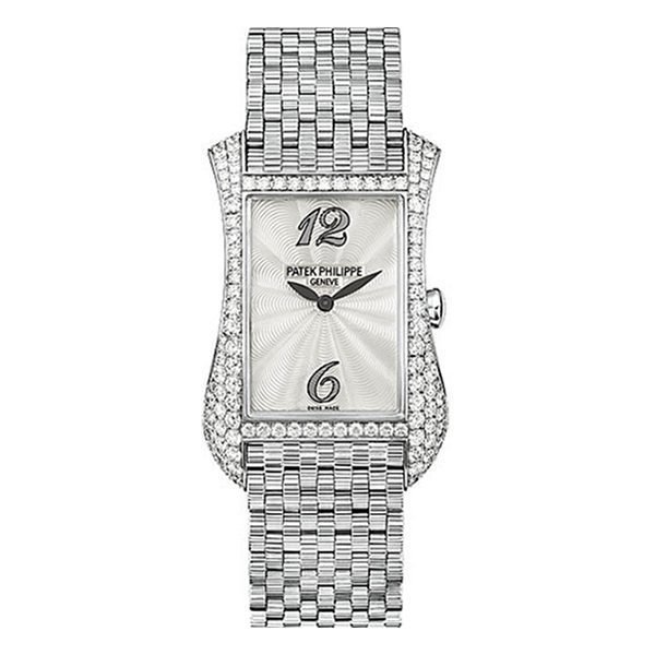Own a piece of horological excellence with the Patek Philippe Gondolo Serta 4972/1G-001 18K White Gold Diamond-Set Bezel Mother Of Pearl Dial Ladies Watch. Elegantly crafted, the Patek Philippe Gondolo Serta 4972/1G-001 ladies watch, part of the prestigious Gondolo collection, is a timeless blend of art deco style and modern design. Offering a combination of strong lines, geometric simplicity, and a distinct art deco style, this timepiece carries a subtle hint of modernity that interprets Patek Philippe?s rich heritage in a new light. Captivating Design The watch?s design is truly awe-inspiring, sporting an irregular, yet intriguing case form. With its case made of 18 karat white gold, it measures 27.4mm x 39.7mm in diameter, and a thickness of 7… Part of our curated collection, ensuring quality and authenticity.