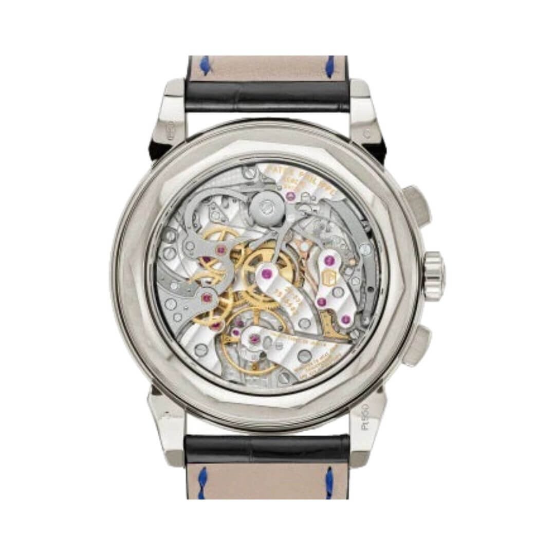 Discover the exceptional craftsmanship of the Patek Philippe Grand Complications 5271/11P-010 Lacquered Chronograph Blue Dial. Introducing the Patek Philippe Grand Complications 5271/11P-010 Men?s Timepiece, a remarkable timepiece that combines traditional design with innovative elegance. This watch showcases Patek Philippe?s commitment to creating exquisite and innovative watches that stand the test of time. Elegant Design With its stunning blue baguette-cut sapphires weighing 5.16 carats, the Patek Philippe Grand Complications 5271/11P-010 is a jewelry version of the iconic Grande Complication chronograph. The lacquered blue dial with a black-gradient rim and gold applied hour markers adds a touch of sophistication…. Experience exceptional service and authenticity.