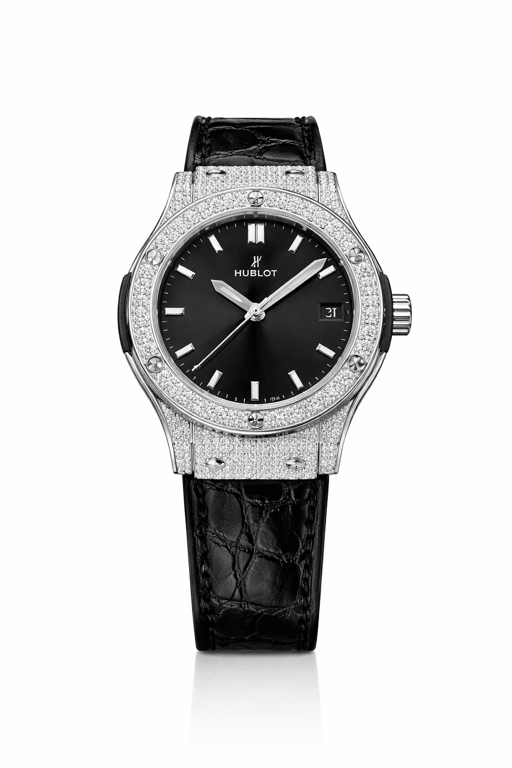 Hublot Classic Fusion Titanium Black 33mm Watch with Custom Moissanite Diamonds