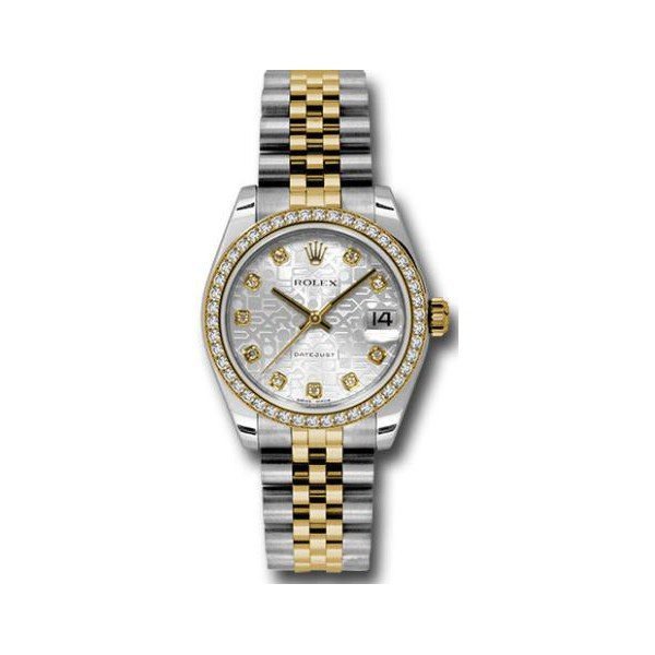 Showcase your refined taste with the Rolex Oyster Perpetual Datejust Stainless Steel 31Mm Ladies Watch. 31mm stainless steel case, 18K yellow gold bezel set with 46 diamonds, mother of pearl dial, diamond hour markers, stainless steel and 18K yellow gold Jubilee bracelet. Discover more premium timepieces in our collection.