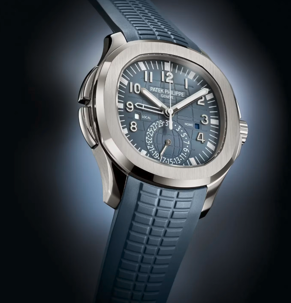 The Patek Philippe Aquanaut Travel Time 5164G-001 is a sophisticated luxury sports watch designed for modern travelers. Crafted in white gold, it features a distinctive embossed dial, dual time zone (Travel Time) function, and an automatic movement for exceptional precision. With its comfortable composite strap, day/night indicators, and elegant yet sporty design, this timepiece offers versatility for both everyday wear and global travel. Combining advanced functionality with iconic Patek Philippe craftsmanship, it delivers durability, style, and performance?making it a perfect choice for collectors and watch enthusiasts.