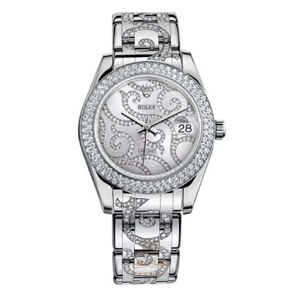 Unveil the magnificence of the Rolex Pearlmaster Midsize 81299 White Gold Diamond Pave Flamme Watch. WATCH SPECIFICATIONS Brand: Rolex Collection: Pearlmaster Reference Number: 81299 Case Material: 18 karat White Gold with Diamonds Case Diameter: 31mm Case shape: Round Dial Color: : Silver Dial Dial Material: 18 karat White Gold with Diamond Pave Flamme Design Bezel: Diamond-set Bezel Material: 18 karat White Gold with Diamond Pave Flamme Design Crystal: Scratch Resistance Sapphire Bracelet Material: 18k White Gold Bracelet With Pave Flamme Diamonds Movement: Self Winding: Automatic Features: Hours, Minutes, Seconds and Date Part of our curated collection, ensuring quality and authenticity.