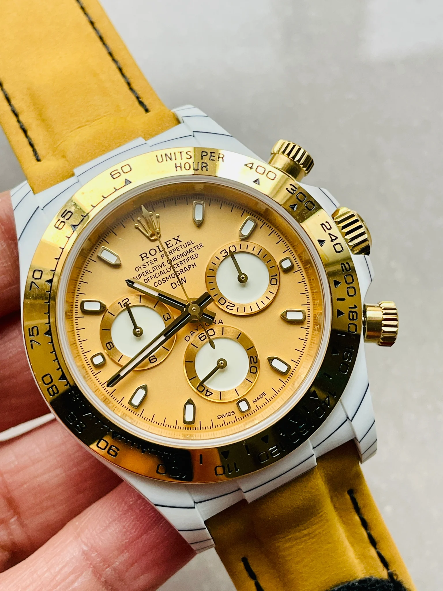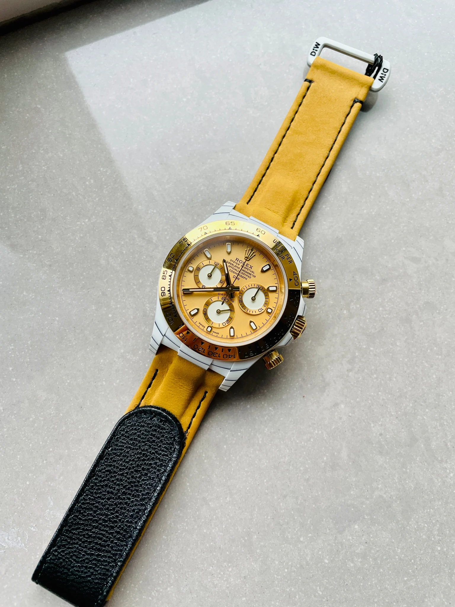 Rolex Daytona DIW White Carbon / YG DIWF Best Edition Gold Dial Super Clone