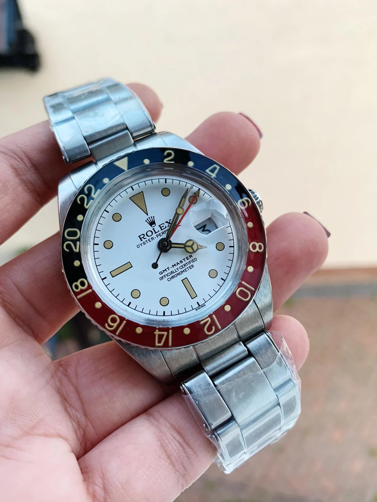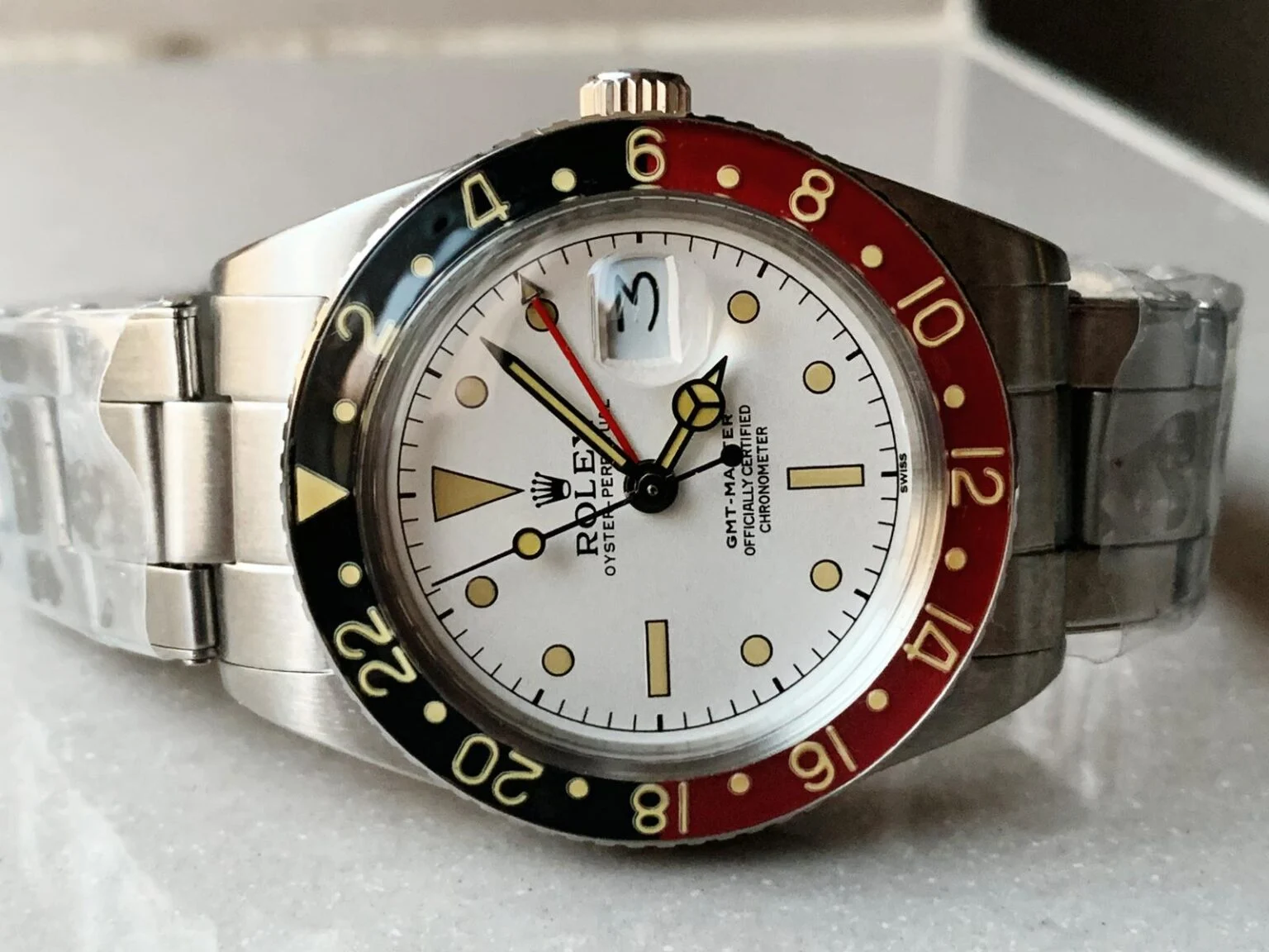 Rolex Vintage GMT Master 6542 Black/Red Bezel White Dial Super Clone