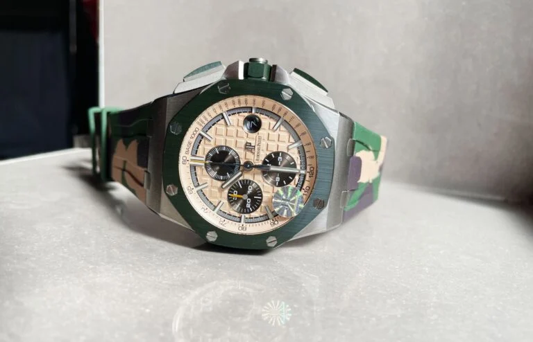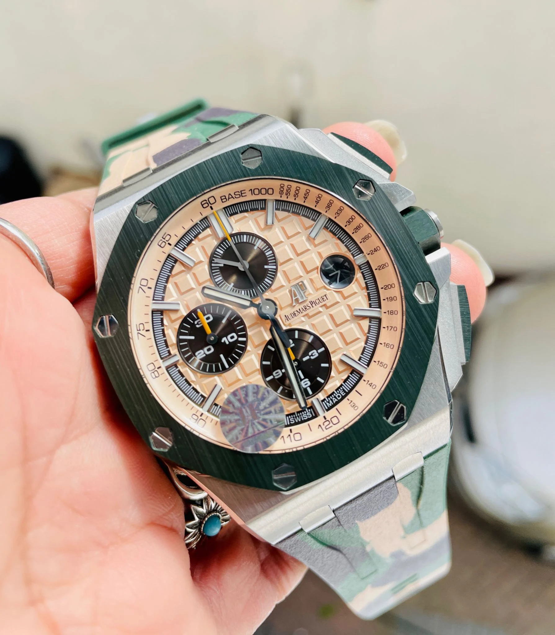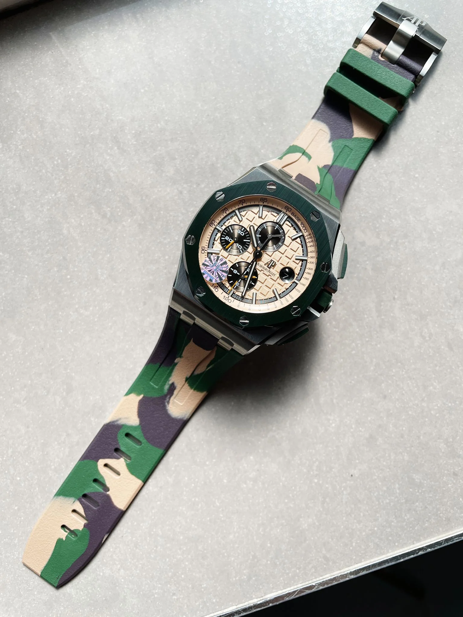 Royal Oak Offshore Chronograph ?CAMO? 26400SO Beige Textured Dial Camouflage Rubber Strap Super Clone