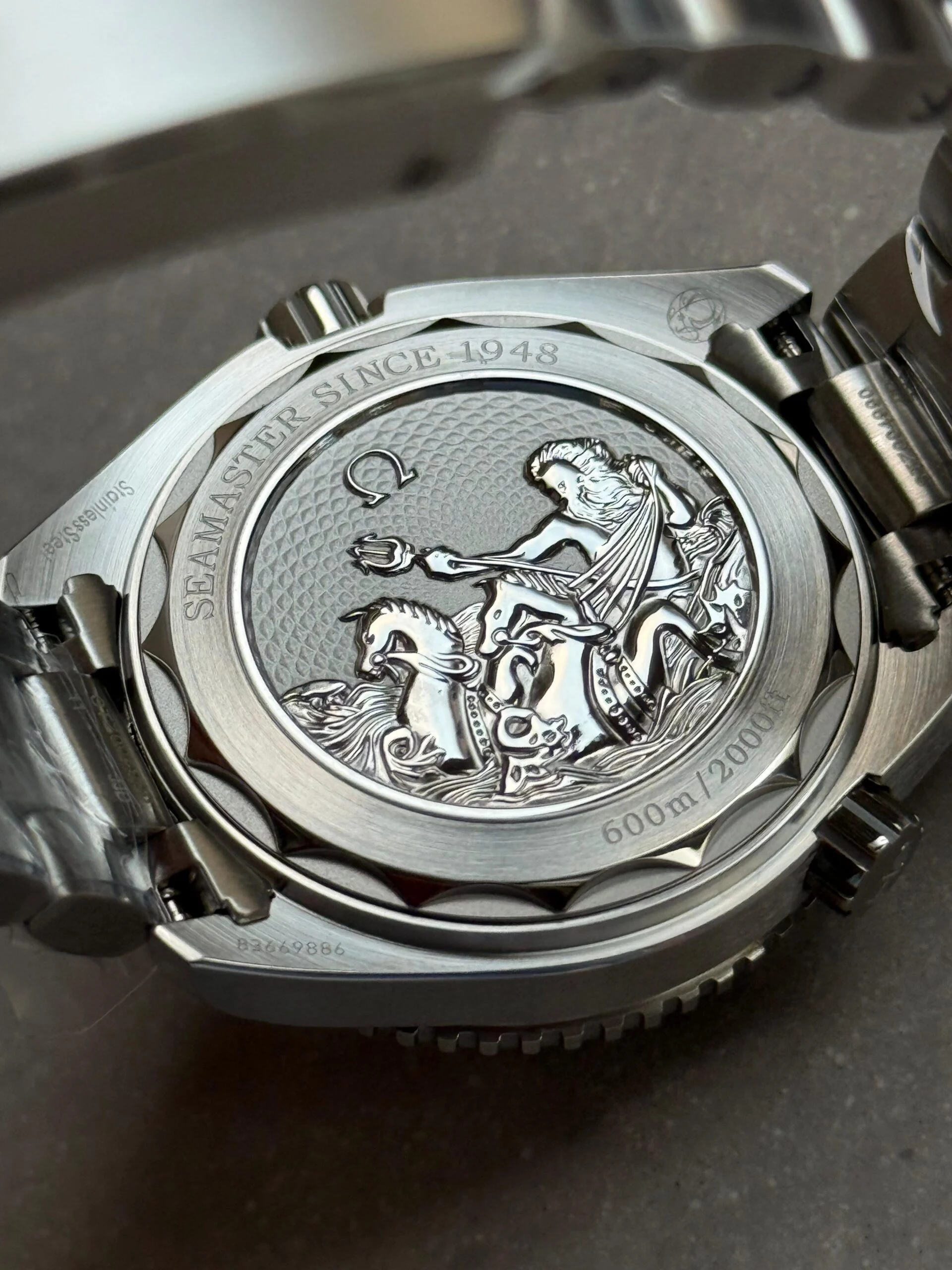 Case Back: Solid, engraved with Seamaster logo