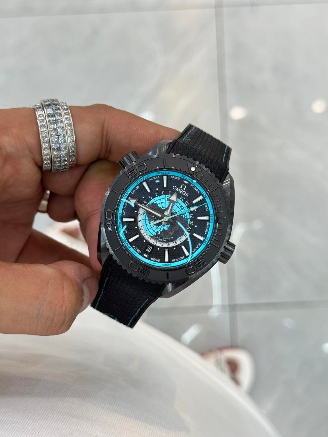 The OMEGA Worldtimer is designed for global travelers who value precision, luxury, and performance. This 45.5 mm watch features a stunning black ceramic case and bezel with a laser-ablated diving scale for a bold and modern look.