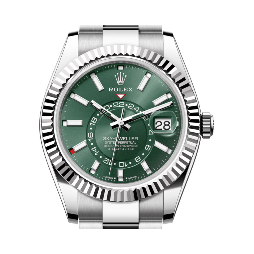 Experience unparalleled quality with the Rolex Sky Dweller 336934-0001 White Gold Mint Green Dial 42mm Men?s Watch. The Rolex Sky-Dweller 336934-0001 is a stunning work of art that combines style, improved functionality, and the famous Rolex design. This 42mm men?s chronometer, made of Rolex Sky-Dweller Oystersteel with a White Gold Mint Green Dial, is the right mix of durability and luxury. This unique timepiece is made of Oystersteel and has an 18k white gold curved bezel that shows off the brand?s famous craftsmanship. The bright mint green dial gives it a fresh, modern look. The Rolex Sky-Dweller is made for people who move a lot. It has a sophisticated dual time zone display with an off-center 24-hour … Backed by ‘s commitment to quality and customer satisfaction.