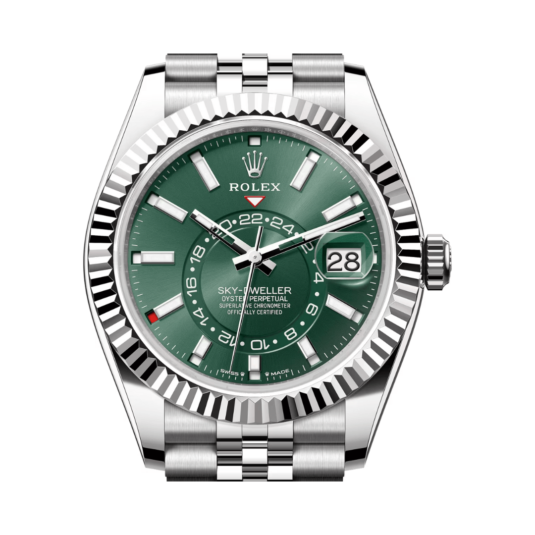 Command attention with the Rolex Sky Dweller 336934-0002 White Gold Mint Green Dial 42mm Mens Watch. Rolex Sky Dweller 336934-0002 SPECIFICATIONS Brand: Rolex Model: Sky-Dweller Reference Number: 336934-0002 Movement: Automatic Power Reserve: 72 hours Case Material: Oystersteel And White Gold Bracelet Material: Oystersteel Crystal: Sapphire Dial Color: Mint Green Clasp: Folding Oysterclasp (Oystersteel) Water Resistance: 10 ATM Functions: Date Shop with confidence – where luxury meets authenticity.