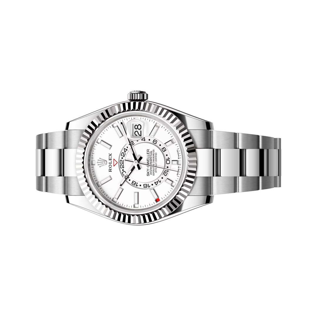 Step into luxury with the Rolex Sky Dweller 336934-0003 Steel & White Gold Fluted Bezel 42mm Men?s Watch. The Rolex Sky-Dweller 336934-0003 is a masterful mix of new technology, style, and functionality, made for world visitors who want precision and style. This timepiece has a strong 42mm Oystersteel case and an 18k white gold fluted bezel, which is a signature feature that shows how well Rolex has been making watches for a long time. The beautiful dial shows two time zones through an off-center 24-hour disc, making it both useful and stylish. The SAROS yearly calendar system automatically tells the difference between months with 30 and 31 days, so it only needs to be changed once a year. The fam… Experience exceptional service and authenticity.